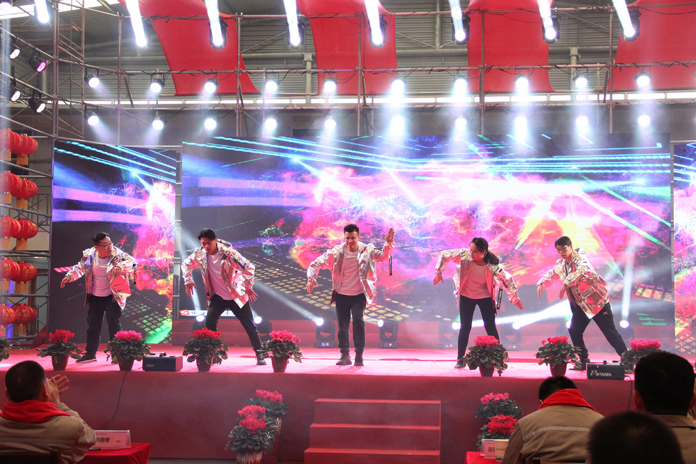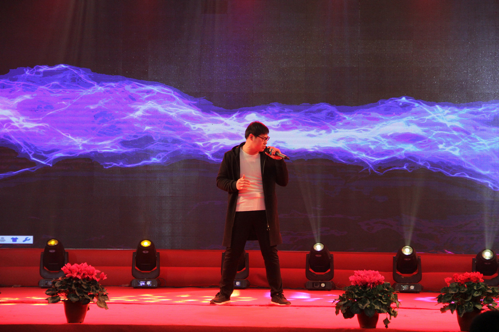 接下來到了文藝表演環節,質量保障部開場歌曲「恭喜發財」熱情似火、激情盎然;行政辦公室后勤保障組演出了幽默、感人的小品「今年餐廳也爭寵」讓我感受到了不一樣的酸甜苦辣;運營中心帶來的「老男孩」訴說了青春的夢想和步伐;鍍鋅車間胡立科先生用矯健的身姿為我們帶來太極劍及太極管表演。