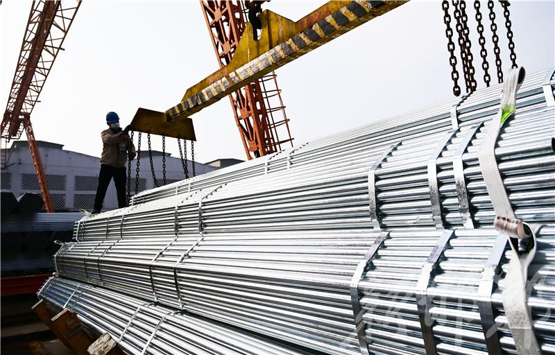 截至目前,公司已陸續到崗人員1000余名,開展了20條生產線,其中包括焊管生產線8條、熱鍍鋅生產線2條、五金件熱鍍鋅生產線1條和波形梁護欄板壓型生產線1條等,已開展的生產線全部日產約2000噸左右。