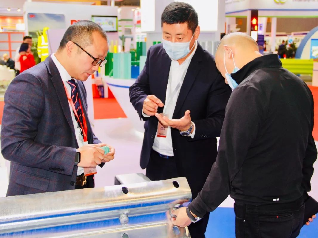 展會期間,天創管業全面展示了交通防護領域的各項產品,包括波形梁鋼護欄立柱、護欄板、防阻塊、柱帽、螺栓及其配件等。憑借多年服務于交通設施行業的良好口碑及領先優勢,天創管業一經亮相,就吸引了眾多行業人士的駐足,并引發現場參觀者及相關客戶的極大關注。多位中國交通運輸協會相關領導親臨天創管業展臺進行視察,對系列展示產品給予了充分肯定。
