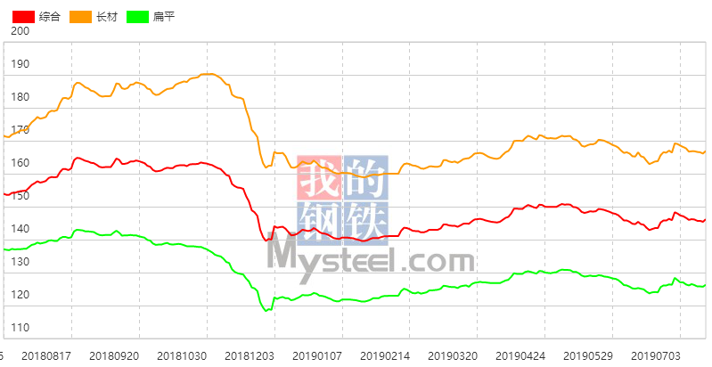 7月16日,國內鋼材指數(Myspic)綜合指數報146.16(絕對價格指數4113.2),較上一交易日上漲0.49%。其中,螺紋鋼指數報159.55點(絕對價格指數4032.9),較上一交易日上漲0.54%;熱卷指數報139.62(絕對價格指數3914.5),較上一交易日上漲0.63%。